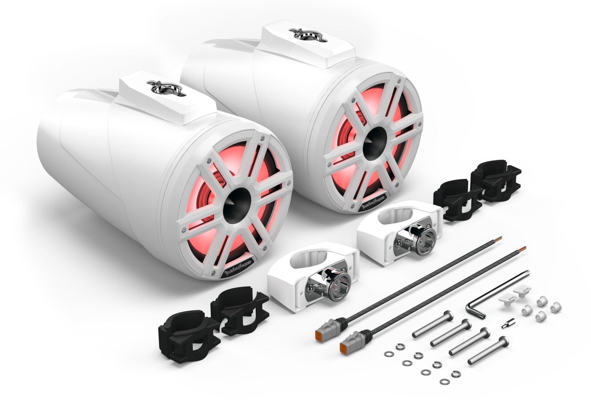 La serie M2 de altavoces de torre de wake Element Ready™ está diseñada para emparejarse con el controlador Rockford Fosgate Color Optix™ y la aplicación RF Connect a través de uno de sus dos conectores Deutsch™/Amphenol™ integrados en el altavoz. El primero se encuentra dentro del centro de la abrazadera de 360 grados para un aspecto sigiloso, y el segundo se encuentra en la parte superior-trasera para instalaciones en las que el recinto se monta directamente en la barra de la torre de estela. Estas conexiones estancas cuentan con la certificación IP67, lo que hace que estos altavoces Element Ready™ estén realmente diseñados para aplicaciones marinas. Para completar su experiencia de sonido, los altavoces M2 se complementan con subwoofers de 10 y 12 pulgadas, también controlados a través del sistema de iluminación Color Optix™. Incluye rejillas estándar y de acero inoxidable.