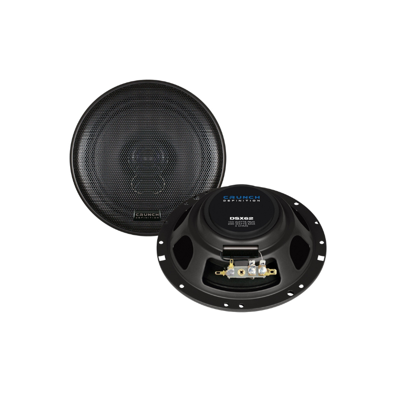 Los altavoces de la serie CRUNCH DSX, de diseño plano, están equipados con sistemas de imán interno especiales. Gracias a su construcción única, los controladores ultra planos, que cuentan con bobinas de voz de 25 mm de alta resistencia, son la primera opción para instalaciones que ahorran espacio. Debido a su baja profundidad de instalación, son especialmente ideales para vehículos donde el espacio de instalación es limitado o donde es necesario reemplazar los altavoces del sistema de sonido de fábrica.
