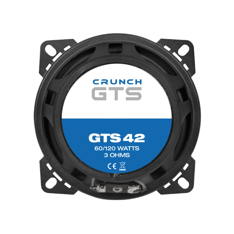 La serie CRUNCH GTS ofrece un sonido de alta calidad, buena eficiencia y fácil instalación. El buen rendimiento se debe, entre otras cosas, al uso de imanes Y30 de alta gama, que, incluso con un tamaño más pequeño, superan a algunos modelos visualmente más grandes. Los altavoces GTS también están a la vanguardia en otros aspectos: las suspensiones (spiders) están ventiladas adicionalmente y los conos tienen un orificio adicional en el núcleo del polo para una mejor refrigeración. Para el cono, los desarrolladores optaron por una versión de polipropileno, que ofrece los mejores resultados en términos de sonido. Gracias a la respuesta de frecuencia lineal de los altavoces, es posible usar cruces de cables muy pequeños, diseñados de forma separada para el tweeter y el woofer.
