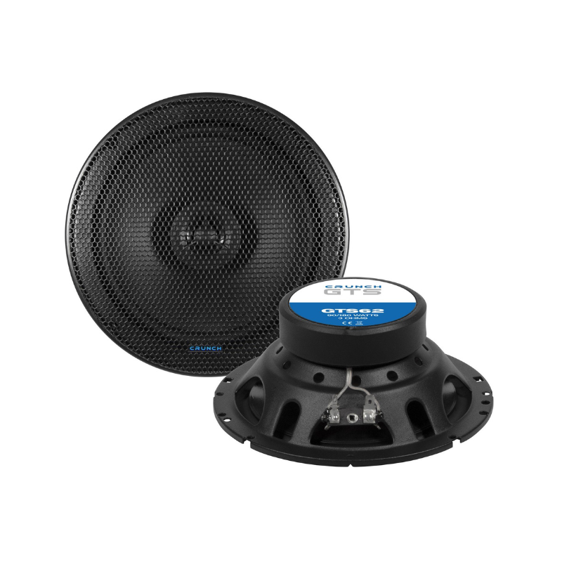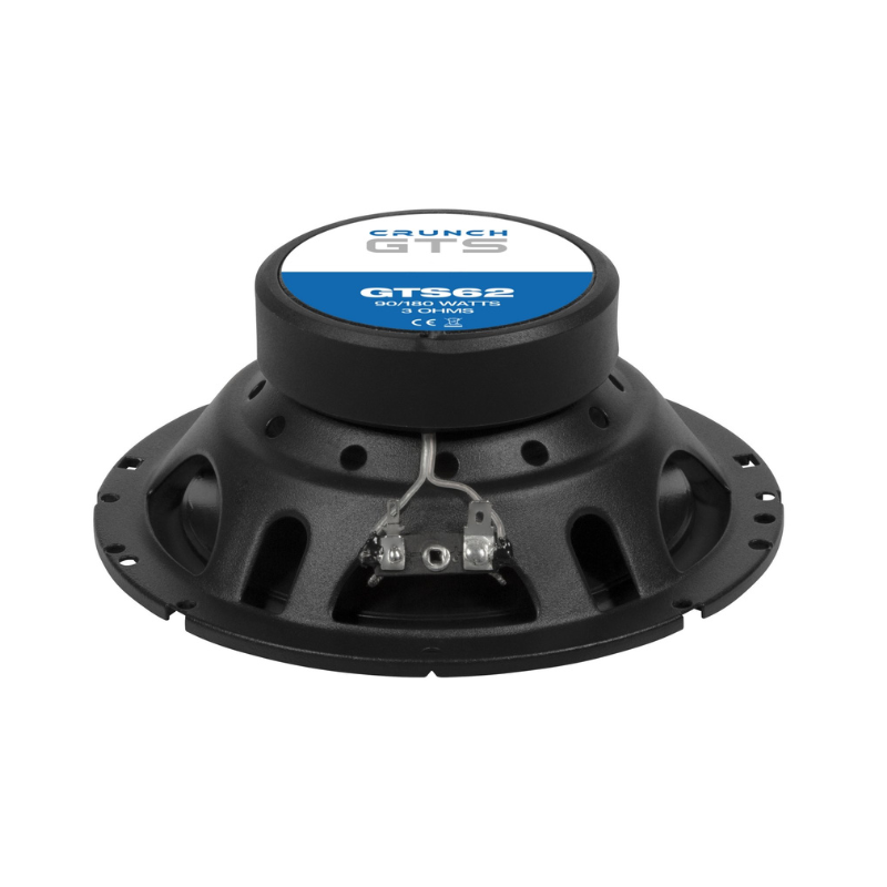 La serie CRUNCH GTS ofrece un sonido excepcional, buena eficiencia y fácil instalación. El buen rendimiento se debe, entre otras cosas, al uso de imanes Y30 de alta calidad, que, incluso con un tamaño más pequeño, superan a algunos modelos ópticamente más grandes. Los altavoces GTS también están a la vanguardia en otros aspectos: las suspensiones (spiders) están ventiladas adicionalmente, y los conos cuentan con un orificio adicional en el núcleo del polo para una mejor refrigeración. Para el cono, los desarrolladores optaron por una versión de polipropileno, que ofrece los mejores resultados en términos de sonido. Gracias a la respuesta de frecuencia lineal de los altavoces, es posible utilizar cruces de cables muy pequeños, diseñados de forma separada para el tweeter y el woofer.
