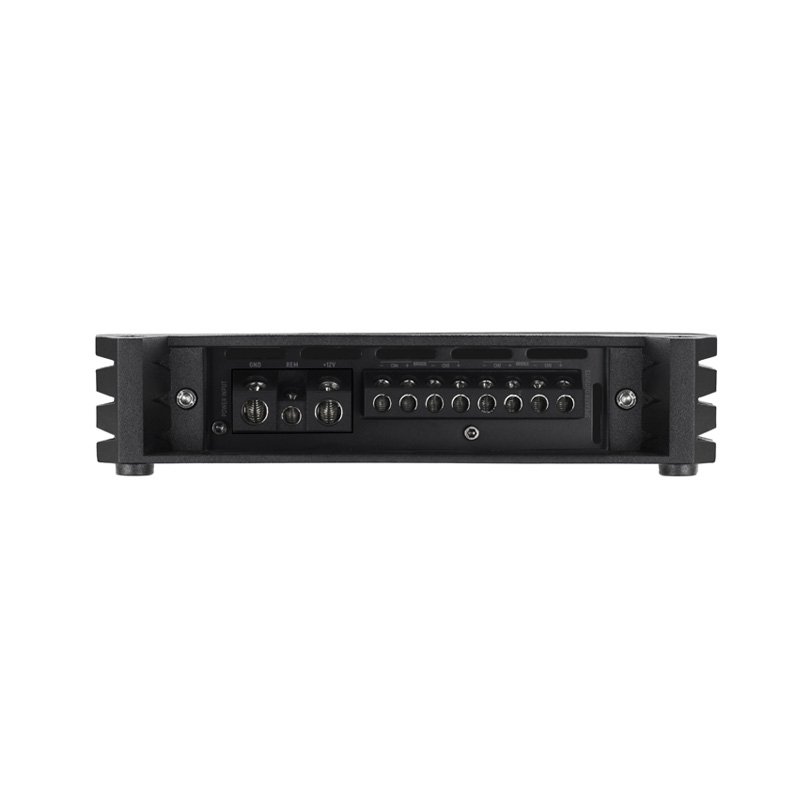 Si buscas un potente amplificador de 4 canales, deberías echar un vistazo más de cerca a la nueva serie MERCURY EVO. Con el nuevo modelo MERCURY IV/800 EVO, HiFonics amplía su gama con una verdadera potencia. Esto se hace evidente nada más desembalarlo: inmediatamente llama la atención un impresionante disipador de calor que pesa 4 kg y mide casi 40 cm de largo. Rápidamente queda claro que tienes en tus manos un amplificador de potencia analógico clásico con un rendimiento enorme. Gracias al diseño analógico Clase A/B y una impresionante potencia de 4 x 200 vatios RMS, el potente MERCURY es ideal para altavoces delanteros y traseros que consumen mucha energía e impresiona por sus excelentes propiedades de sonido. Debido a su enorme potencia, también se puede utilizar fácilmente en modo puente en los canales 3-4 para accionar potentes subwoofers con 400 vatios RMS. Por eso no hemos renunciado al práctico mando a distancia de los niveles de graves, que está incluido en el volumen de suministro.