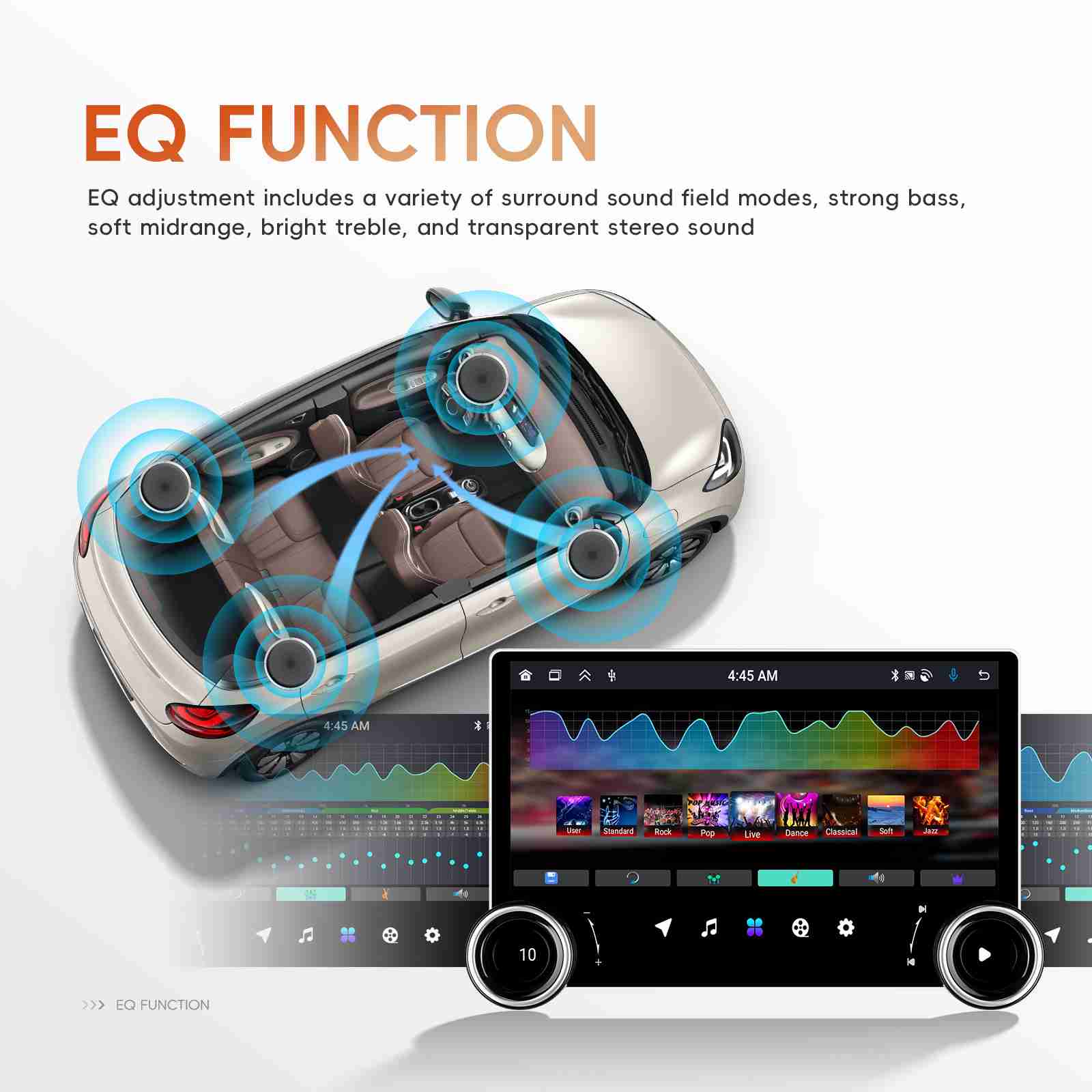 ●EQ incorporado:Ecualizador integrado con múltiples modos de sonido como graves profundos, sonido envolvente 3D y mejora vocal. ¡Personalice la configuración de audio para que coincida con su estilo musical y disfrute de la mejor calidad de sonido posible en cualquier lugar!
