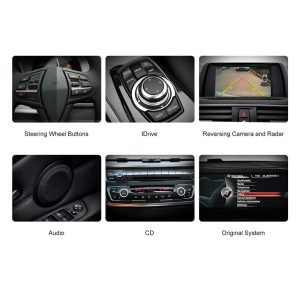 - Mantener las funciones originales: Después de reemplazar esta pantalla, su automóvil conserva todas las funciones originales, como radio, CD/DVD, Bluetooth, amplificador, control del volante, sistema iDrive de fábrica/navegación/cámara de visión trasera y radar de estacionamiento, etc., ahora puede actualizar al estéreo de automóvil moderno sin perder nada.