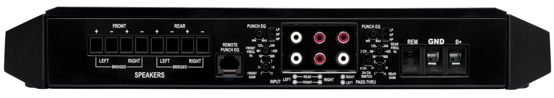 • Optional PEQ Bass-Remote • 2/4 CH Input Select Switch • 70% Efficiency