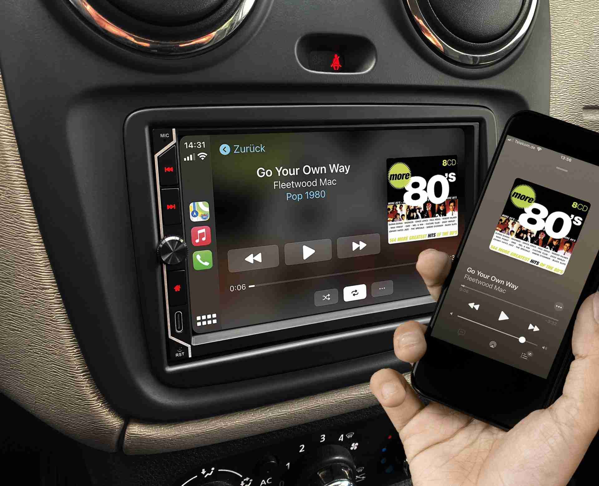 -Compatible con Apple CarPlay® o Android Auto™ (inalámbrico y USB)